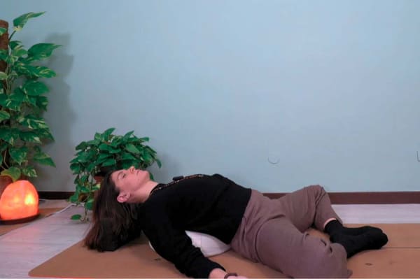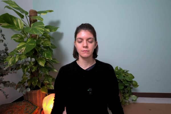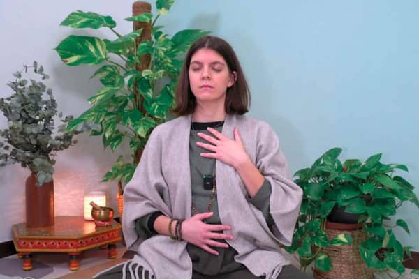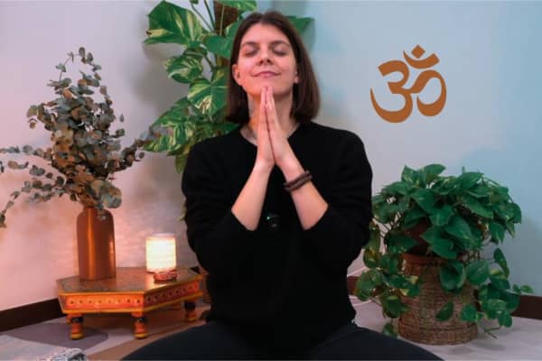 Entriamo in connessione con il nostro respiro e pratichiamo la respirazione yogica per rallentare il ritmo del nostro battito, calmare la mente e preparare il diaframma al canto del mantra OM. Pratichiamo il mantra OM per 54 volte (la metà di 108, numero ideale) e rimaniamo in meditazione per osservarne gli effetti.